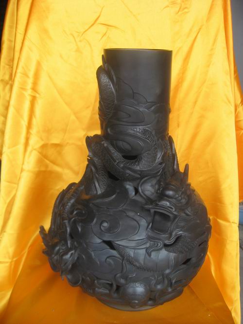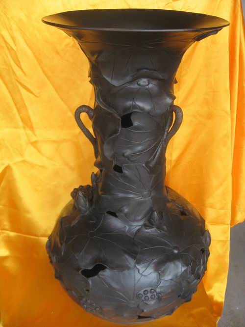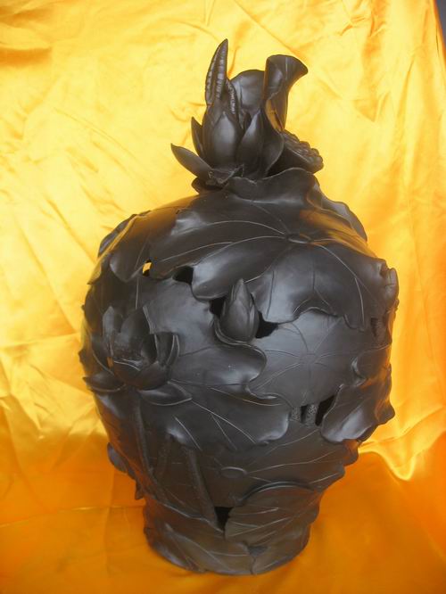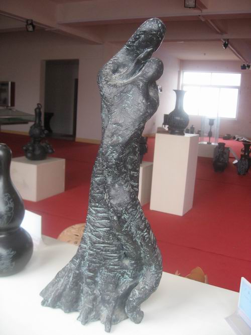 中國的造型藝術(shù)始于陶,陶文化是華夏古文明的一個(gè)重要淵源。日照境內(nèi)古遺址出土的各類陶器,是中國龍山文化最著名、最典型的陶器,被史學(xué)家稱為“原始文化的瑰寶”。整整沉睡了四千多年的古文化,在仇志海先生手上得以恢復(fù)。卜廣云的的黑陶作品獨(dú)具“仇氏”風(fēng)格與魅力。她將歷史文化的意蘊(yùn)與現(xiàn)代審美觀念巧妙結(jié)合,其作品粗狂奔放、簡潔流暢、如刀劈斧鑿、似生命在現(xiàn)、古樸典雅、現(xiàn)青銅之光……