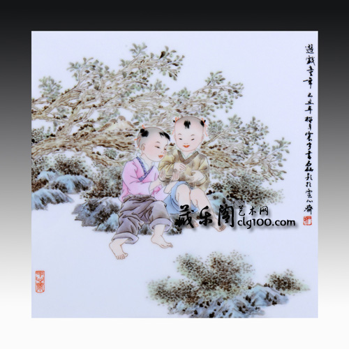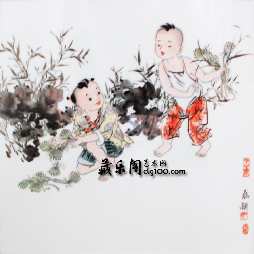 97年至今,除了典雅含蓄的仕女畫外,李磊穎的瓷畫作品中數量最多,質量最高的當屬各類童子形象,這些形象既有作者自己對幸福童年的追憶,也有初為人母后的溫馨情懷的體驗,它是一個女性藝術家處于人生重要階段時種種細膩情緒的外化和再現。