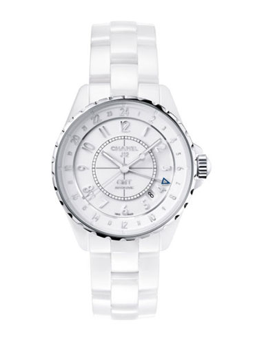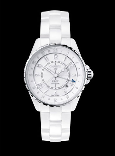 香奈兒2012巴塞爾新品:香奈兒 J12 GMT 白色陶瓷腕表。
