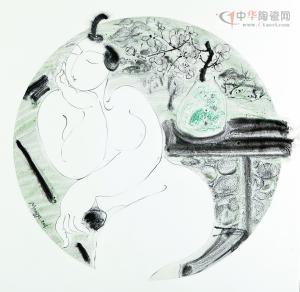 劉正作品中重疊相連的人體造型體現(xiàn)了瓷板畫(huà)具有展現(xiàn)雕塑這一藝術(shù)形態(tài)的可能性。“我一直覺(jué)得我掙扎在一張網(wǎng)中,這張網(wǎng)是由復(fù)雜的歷史文化構(gòu)成的。一方面,我需要依賴這張網(wǎng),使自己不至于懸浮在空中。另一方面,我需要掙脫這張網(wǎng),使自己減少被束縛的痛苦和被窒息的危險(xiǎn)。”這就是他的當(dāng)代藝術(shù)創(chuàng)作理念。他的釉下彩瓷系列作品,立意新穎,邏輯思維縝密,通過(guò)具有生命力的線條,張揚(yáng)了瓷板畫(huà)的哲學(xué)空間。