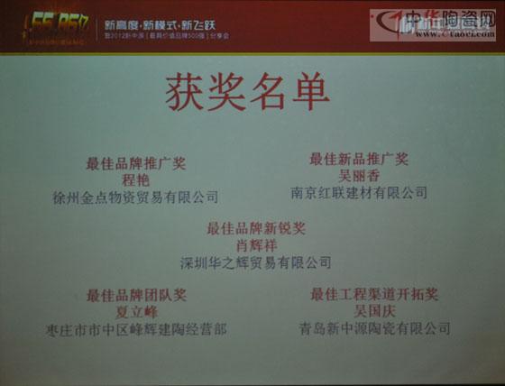 本次活動還設(shè)置了五項大獎:最佳品牌新銳獎、最佳品牌推廣獎、最佳品牌團(tuán)隊獎、最佳新品推廣獎、最佳工程渠道開拓獎,以歡迎、鼓勵新老客戶共同發(fā)展,并由歐書軍總經(jīng)理親自為獲獎?wù)哳C獎。