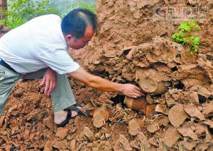 大量古陶瓷鑲嵌于黃土之中