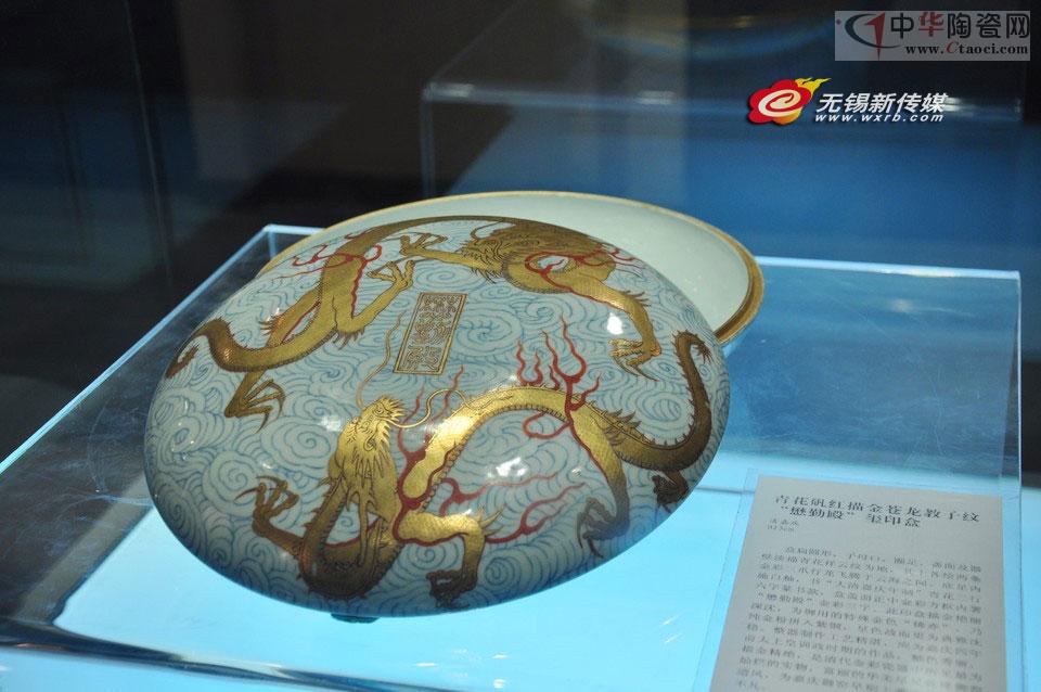 青花礬紅描金蒼龍教子紋“懋勤殿”璽印盒 清嘉慶