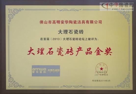 安華瓷磚喜獲大理石瓷磚產(chǎn)品金獎