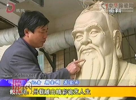 2011年,我縣決定復建文廟,同時為之量身定做一尊大型的孔子瓷雕塑像,賴禮同攬下這項前無古人的活兒,挑戰(zhàn)前所未有的制作難題。從去年年初開始,賴禮同把精力放在了研究孔子塑像上,在他的陶瓷研究所,我們見到了已經(jīng)塑造成形的孔子塑像,造型豐滿、工藝精美、面相莊重慈祥、衣紋清晰流暢飄逸?鬃铀芟窀2.7米,燒成后可達2.2米,這尊雕塑目前是獨一無二整體燒制成型的,在藝術和技術上都有很多的新突破。賴禮同說,孔子塑像燒制成功后準備申報吉尼斯世界紀錄。