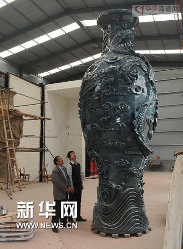5月2日,高6.5米、最大直徑2.7米、重達7.8噸的巨型陶瓷九龍瓶在陶瓷名城山東省淄博市淄川區(qū)面世。
