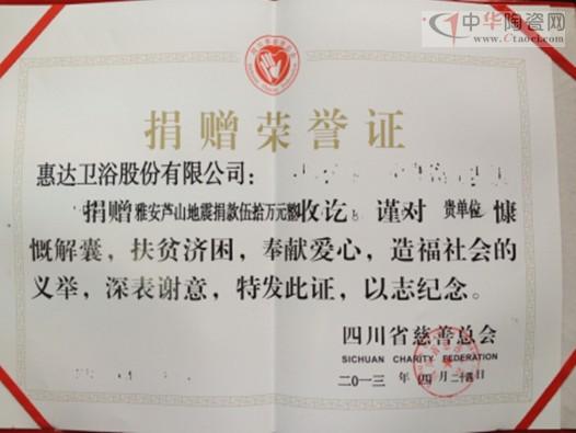 2008年汶川大地震,唐山惠達(dá)衛(wèi)浴第一時間捐款100萬;2009年惠達(dá)衛(wèi)浴總經(jīng)理王彥慶親自前往四川災(zāi)區(qū)考察災(zāi)后重建工程;2010年4月14日,青海玉樹發(fā)生7.1級地震,4月15日,惠達(dá)衛(wèi)浴向中國紅十字基金會捐款50萬元支援玉樹;4月15日,惠達(dá)衛(wèi)浴在北京舉行義賣,將義賣產(chǎn)品所得款項全部捐贈我國西南旱區(qū);4月29日,惠達(dá)衛(wèi)浴捐贈僑聯(lián)援建北川中學(xué)捐贈儀式在綿陽舉行,惠達(dá)衛(wèi)浴捐贈價值100萬元的潔具產(chǎn)品幫助北川中學(xué)重建……一筆筆捐贈,一次次善舉,惠達(dá)衛(wèi)浴正以他們的行動來回報整個社會。同樣經(jīng)歷過災(zāi)難,同樣接受過別人的幫助,惠達(dá)衛(wèi)浴清楚的了解每一次公益行動背后的真正意義。對于惠達(dá)衛(wèi)浴來說,公益事業(yè)是一條永遠(yuǎn)沒有終點的道路,而他們也將用自己的努力在這條道路上闊步前行!