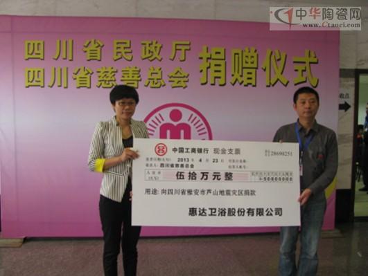 四川雅安蘆山發(fā)生7.0級地震后,國內(nèi)最大衛(wèi)浴企業(yè)惠達(dá)衛(wèi)浴在第一時間宣布向災(zāi)區(qū)捐款50萬元,用于采購救災(zāi)物資,全力幫助災(zāi)區(qū)人民早日重建家園。