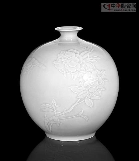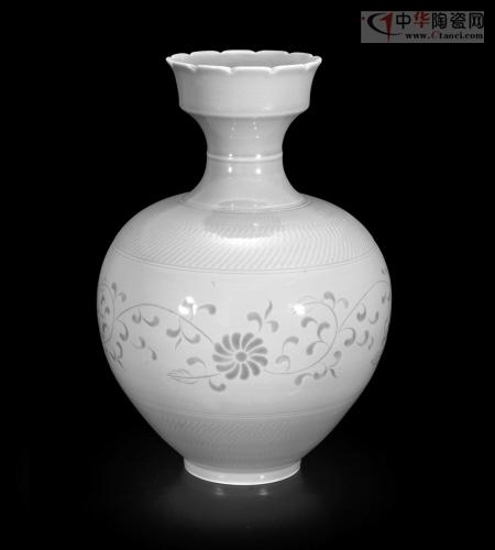越窯茶花圓腹瓶