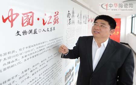 占兆理在義烏市江蘇商會向客人介紹江蘇的基本情況。
