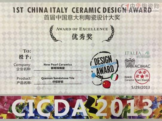 冠珠仿古磚“仟仞砂巖”喜獲“首屆中國意大利陶瓷設(shè)計大獎”