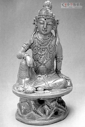 ■北宋青釉觀音坐像。