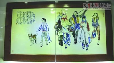 這幅《鄱湖漁歌》是李一新2012年創(chuàng)新之作,采用高溫顏色釉裝飾工藝,在胚胎上作畫后,再上一層釉,在1300度的高溫下燒制而成。畫面白底釉面上,一群衣著純樸的漁家姑娘打漁而歸,她們邁著輕快的腳步,有的提桶,有的挎籃,臉上掛滿笑容,由內而外地散發(fā)著幸福的喜悅,旁邊一只憨態(tài)可掬的小狗也悠閑地邁著步子,同游歸來。