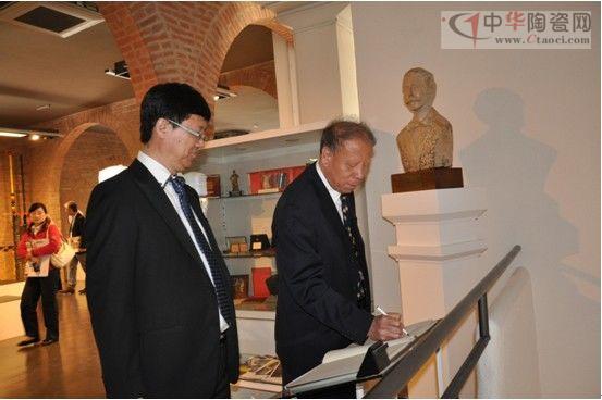 中國(guó)建筑裝飾協(xié)會(huì)會(huì)長(zhǎng)李秉仁在陶瓷博物寫下祝福