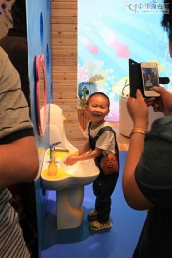 <!--[endif]-->展會現(xiàn)場一對母子在體驗(yàn)兒童衛(wèi)浴產(chǎn)品
