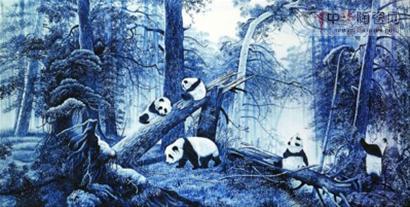 《歡樂(lè)家園》是一幅大尺寸的瓷板畫(huà),畫(huà)面上是一片森林。巨木參天,五只可愛(ài)的熊貓寶寶神態(tài)各異,有的在打盹,有的在攀爬,有的在玩耍,有的在行走,快樂(lè)悠閑,這是一種作者的心境描寫,展示對(duì)生活的熱愛(ài)與追求。青花追求的是一種簡(jiǎn)潔明快,而作者在整個(gè)畫(huà)面上滿滿當(dāng)當(dāng),很少留白,這就顯示了他的功力。在這幅畫(huà)面中,無(wú)論布局與構(gòu)圖,作者都能用豐富的層次來(lái)展現(xiàn)。同樣參天大樹(shù),遠(yuǎn)處是淡淡的,近處不惜濃墨;憨態(tài)可掬的熊貓,無(wú)論是動(dòng)還是靜,生動(dòng)活潑;特別在畫(huà)面的中央,透出幾縷陽(yáng)光,讓人有種豁然開(kāi)朗的感覺(jué),不會(huì)因色彩的單一和畫(huà)面的紛繁而感到沉悶。