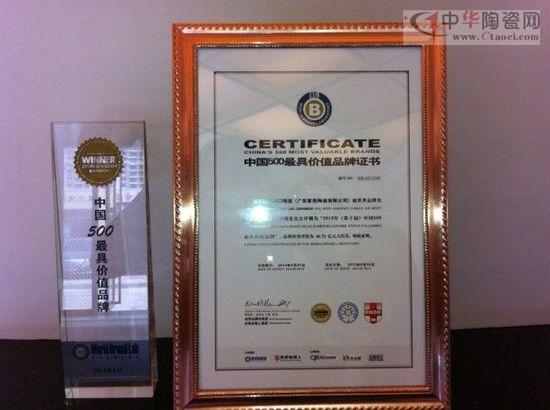(L&D陶瓷“中國500最具價值品牌”獎杯及證書)
