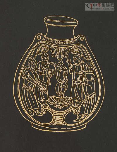 這件黃釉扁壺,其皮囊式造型與胡騰舞的圖像,強烈再現(xiàn)了千余年前西域游牧民族的文化特色。這種扁壺在河南洛陽、孟津北朝墓中也有出土,且形制和圖案相近,這是對中原與西域音樂文化交流最為直觀形象的詮解,說明中原漢民族對于外來文化一直秉承兼收并蓄的文化態(tài)度,同時也為研究北朝時期的胡漢民族關(guān)系、南北朝時期的陶瓷工藝發(fā)展以及我國樂舞發(fā)展提供了珍貴的實物資料。