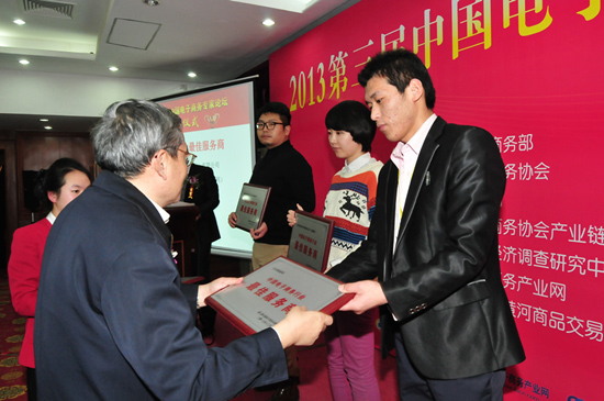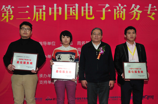 “中國(guó)電子商務(wù)行業(yè)最佳服務(wù)商”由中國(guó)電子商務(wù)專家?guī)斐蓡T、電子商務(wù)協(xié)會(huì)領(lǐng)導(dǎo)等行業(yè)領(lǐng)導(dǎo)專家及中國(guó)電子商務(wù)協(xié)會(huì)產(chǎn)業(yè)鏈營(yíng)銷發(fā)展中心,按照行業(yè)分類,結(jié)合中國(guó)社會(huì)經(jīng)濟(jì)調(diào)查研究中心產(chǎn)業(yè)經(jīng)濟(jì)研究所、易觀國(guó)際數(shù)據(jù)統(tǒng)計(jì)分析等權(quán)威數(shù)據(jù)統(tǒng)計(jì),經(jīng)組委會(huì)綜合評(píng)選后,最終審核頒發(fā)的行業(yè)大獎(jiǎng)。本次活動(dòng)同時(shí)評(píng)選出中國(guó)電子商務(wù)行業(yè)十佳品牌企業(yè)、最佳誠(chéng)信企業(yè)、排頭兵企業(yè)、新銳人物獎(jiǎng)。