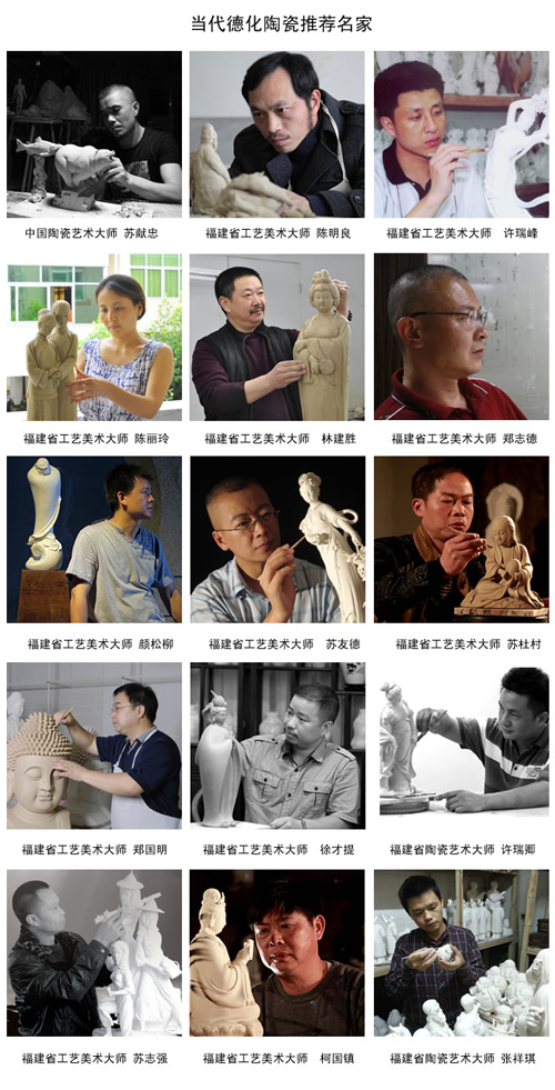 近日,中華陶瓷網(wǎng)“當(dāng)代德化陶瓷名家”推薦活動(dòng)正式啟動(dòng),本次活動(dòng)為期三年,將通過(guò)中華陶瓷網(wǎng)、《陶瓷之路》、線下德化名瓷展、中華陶瓷網(wǎng)微信公共平臺(tái)、新浪官方微博、騰訊官方微博等資源,推薦15位當(dāng)代德化極具代表性的實(shí)力派陶瓷藝術(shù)大師,有中國(guó)陶瓷藝術(shù)大師——蘇獻(xiàn)忠,福建省工藝美術(shù)大師——陳明良、許瑞峰、陳麗玲、林建勝、鄭志德、顏松柳、蘇友德、蘇杜村、鄭國(guó)明、徐才提,福建省陶瓷藝術(shù)大師——許瑞卿、蘇志強(qiáng)、柯國(guó)鎮(zhèn)、張祥琦。