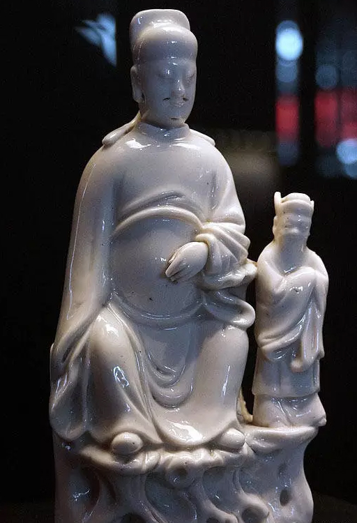 在故宮博物院收藏的35萬(wàn)件古陶瓷中,有700多件明清時(shí)期的德化窯瓷器,其中54件屬于清宮舊藏,是故宮博物院收藏明代地方窯瓷器的一個(gè)亮點(diǎn),明代制品多達(dá)200余件,其中更以何朝宗款宗教人物造像為佳。在文華殿陶瓷館的常設(shè)展上,署有明代德化瓷塑巨匠何朝宗名款的觀音坐像、鶴鹿仙人尤其令人稱道,其中以傳世瓷塑名作《達(dá)摩立像》最為精彩的。