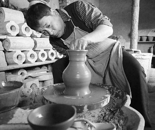 3月21日,陽泉平定張文亮刻花瓷文化有限公司車間內,國家級非物質文化遺產保護項目 “平定黑釉刻花瓷制作工藝”代表性傳承人張文亮在制作黑釉刻花陶瓷產品。