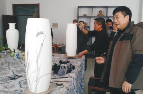 3月26日,遼寧畫院法庫陶瓷藝術(shù)創(chuàng)作基地揭牌,戴都都、崔曉柏等國內(nèi)知名畫家現(xiàn)場在精品陶瓷上揮毫潑墨,一幅幅“山水畫”栩栩如生。