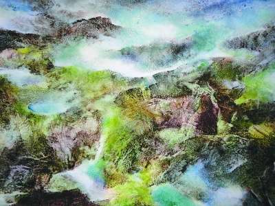 自然世界的內(nèi)在精神在畫家心中激起千層波濤,自然山體在畫家筆下放射出巨大的能量,充滿著豪邁的陽剛之氣。此時(shí),一切束縛自我的技巧、形式都不復(fù)存在。李林洪的作品既有中國傳統(tǒng)書法的抽象和中國傳統(tǒng)繪畫的神韻,又有油畫色彩的渾厚、水彩畫的靈動(dòng),還融入了雕塑的凝固和重量感。其藝術(shù)手法非西方抽象表現(xiàn)主義所能囊括,也不是中國水墨寫意山水的范疇,而是把當(dāng)代藝術(shù)的抽象、表現(xiàn)、觀念等手法融入中國藝術(shù)的造境與寫意之中,呈現(xiàn)的是一種古今相匯、東西交融的氣象。