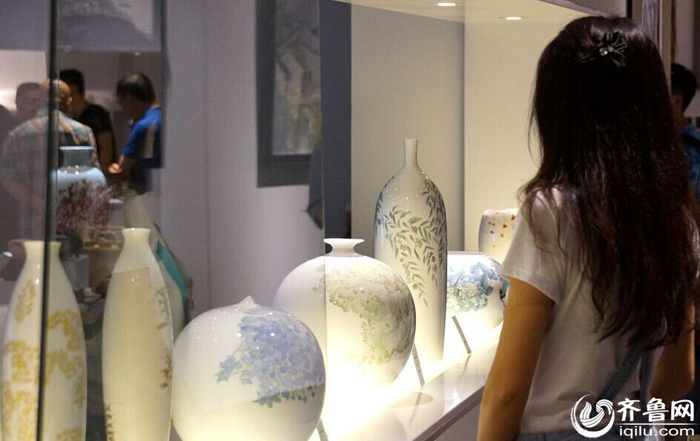 27日下午,由文化部恭王府管理中心、中國國家畫院公共藝術(shù)院陶瓷研究所、山東美術(shù)家協(xié)會(huì)、山東藝術(shù)學(xué)院主辦的“埏物”遠(yuǎn)宏藝術(shù)作品展在濟(jì)南CCPARK創(chuàng)意港舉行。此次展出的釉下五彩瓷器白如玉、明如鏡、薄如紙、聲如磬。(實(shí)習(xí)記者 張國良 攝)