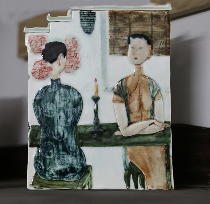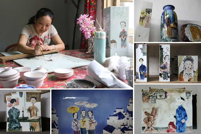 景德鎮(zhèn)陶瓷藝術(shù)家梁永紅的釉下五彩綜合裝飾陶瓷藝術(shù)品,將亮相第三屆濟(jì)南藝術(shù)品博覽會(huì),成為一大看點(diǎn)。她筆下的陶瓷作品,以江南建筑為陶瓷造型,營造了濃郁的環(huán)境氣息,工筆淡彩地將一襲旗袍的江南窈窕淑女融入瓷瓶釉色之中,訴說著江南水鄉(xiāng)煙雨蒙蒙的前世今生和女子溫婉柔順、嫻靜端莊的詩情畫意。畫面中既讓人欣賞到了瓷器與畫技的精髓之美,也讓人隱約地感受到了一種恬靜的淡淡鄉(xiāng)愁。