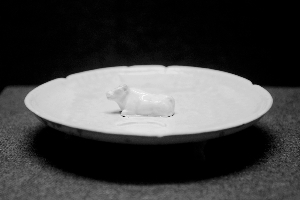 “吳牛喘月”白釉三足盤(pán)