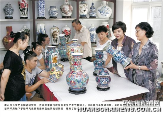 近幾年來,唐山市元亨藝術(shù)陶瓷研究所在傳統(tǒng)骨質(zhì)瓷生產(chǎn)工藝基礎(chǔ)上,大膽突破創(chuàng)新。最近他們結(jié)合景泰藍(lán)的風(fēng)格特點(diǎn),采用釉下手繪,研制出具有景泰藍(lán)效果的陶瓷新品,達(dá)到了獨(dú)具特色的藝術(shù)效果,在國內(nèi)骨質(zhì)瓷生產(chǎn)工藝中屬于首創(chuàng)。
