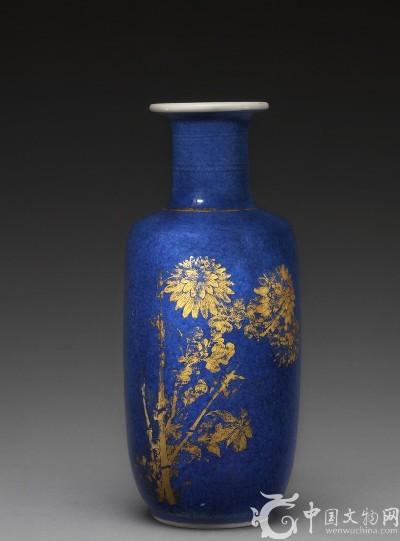 景德鎮(zhèn)御窯 康熙灑藍(lán)釉描金小棒槌瓶