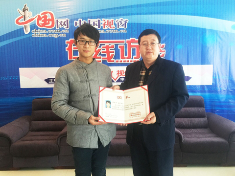 12月9日上午10時(shí),由國賓禮特供評審委員會評委劉月好先生為河北90后青年工藝美術(shù)師王自興和劉闊頒發(fā)聘書,此活動在中國網(wǎng)中國視窗訪談室頒發(fā)。