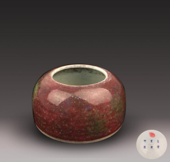 此藏品高:6cm ,口徑:4.7cm。小口、鼓腹、圈足,造型端莊施豇豆紅色釉水,純正雅致,釉面潤(rùn)澤、胎質(zhì)堅(jiān)硬,底足款識(shí)為“大清康熙年制”,文房用具做工藝精湛,包漿自然有年代感,符合清代早期瓷器特征,精品、珍惜,保存完好,具有極高的收藏價(jià)值。