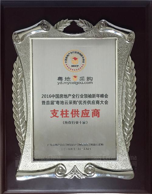 2015年12月29日,由網(wǎng)易房產(chǎn)主辦的“互聯(lián)網(wǎng)·家·新風(fēng)口——2016中國(guó)房地產(chǎn)全行業(yè)領(lǐng)袖新年峰會(huì)暨中國(guó)地產(chǎn)家居冠軍榜及粵地標(biāo)桿支柱供應(yīng)商大會(huì)”在琶洲香格里拉酒店珠江宴會(huì)廳盛大舉行。金牌亞洲陶瓷作為噴墨瓷磚領(lǐng)導(dǎo)者品牌出席本次盛會(huì),與地產(chǎn)全行業(yè)優(yōu)秀企業(yè)共話發(fā)展,共襄盛事。金牌亞洲陶瓷被評(píng)為“2016首批粵地云采購(gòu)優(yōu)秀供應(yīng)商”。
