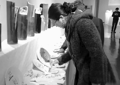 展覽的簽到處是一件由觀眾共同完成的作品——《生活的意義》,一堆生活中常用的杯盤的殘片,讓每個(gè)來客在上面簽名,寓意生活并沒有完美和固定的“形”。