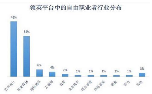 報(bào)告分析,領(lǐng)英用戶中自由職業(yè)者所在行業(yè)覆蓋社交媒體、工程、程序員等多領(lǐng)域。其中從事藝術(shù)設(shè)計(jì)類自由職業(yè)用戶最多,占46%,而且工作范疇不僅限于傳統(tǒng)的高端藝術(shù)品和圖像藝術(shù)領(lǐng)域,還包括音樂(lè)家、插畫師及化妝師。