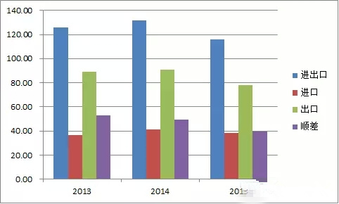歐盟陶瓷進(jìn)出口情況(單位:億美元)