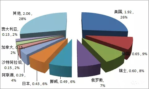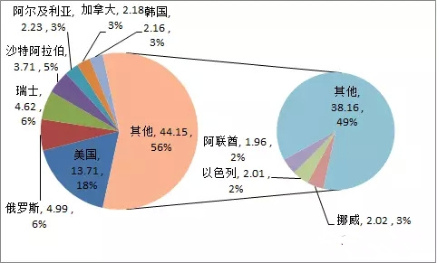 歐盟陶瓷出口市場(chǎng)分布情況(單位:億美元)