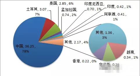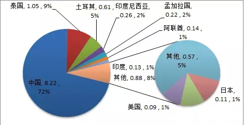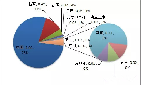 歐盟進(jìn)口日用陶瓷金額來源分布(單位:億美元)
