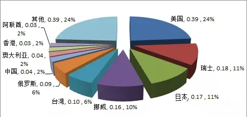 歐盟從美國(guó)進(jìn)口陶瓷品種分布(單位:億美元)