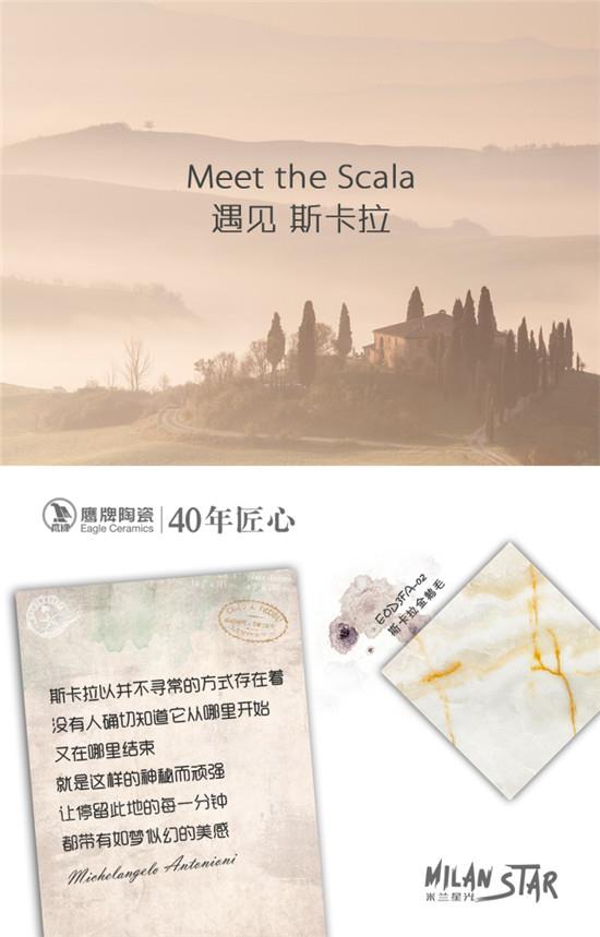就如鷹牌陶瓷米蘭星光系列,設(shè)計大師對產(chǎn)品傾注一份對異國歷史文化名城的傾慕,每一片米蘭星光,都是一段走心的難忘旅程。旅途上的那奇思妙想、莫名感動,還有意猶未盡,通過肌理與色彩的豐富交織,栩栩如生地烙印在瓷磚上,成為心靈的“秘密通道”,隨時通往那詩與遠(yuǎn)方。