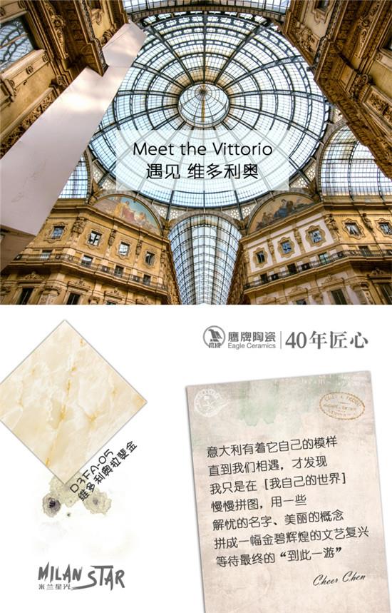 2016年,鷹牌陶瓷“真石代風(fēng)暴”四大新品矚目崛起,其中“時尚真石”——“米蘭星光”糖果釉系列,精選的五款意大利珍稀大理石,款款經(jīng)典,產(chǎn)品創(chuàng)作的設(shè)計之旅深入意大利米蘭的五個建筑地標(biāo),地標(biāo)的傳奇,歷史的氣息,建筑的色彩,都成為美的思想軌跡,潛移默化地融入產(chǎn)品的設(shè)計及應(yīng)用之中。