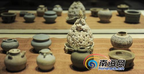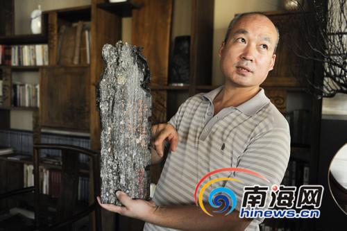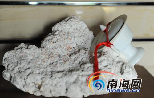 在他存放藏品的專用房間內(nèi),他也向記者展示了一份獨有的收藏品——一只從西沙北礁出水的完整的宋代陶罐。