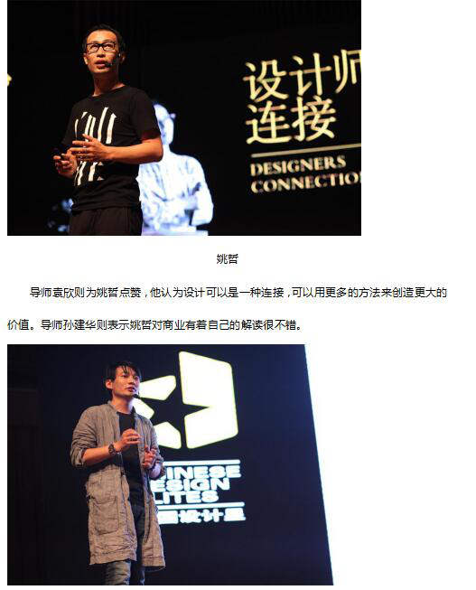 導(dǎo)師袁欣則為姚哲點(diǎn)贊,他認(rèn)為設(shè)計可以是一種連接,可以用更多的方法來創(chuàng)造更大的價值。導(dǎo)師孫建華則表示姚哲對商業(yè)有著自己的解讀很不錯。