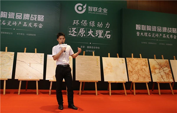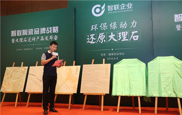 2016年8月8日,由智聯(lián)陶瓷主辦、中國陶瓷網(wǎng)承辦,智聯(lián)陶瓷品牌戰(zhàn)略暨大理石瓷磚產(chǎn)品新聞發(fā)布會,于北京國家會議中心隆重舉行。本次新聞發(fā)布會共同見證了智聯(lián)陶瓷積極踐行“綠動力”提升工程,斥巨資全面改造生產(chǎn)線設(shè)備、革新環(huán)保技術(shù),從生產(chǎn)到產(chǎn)品匹配新型工業(yè)化模式,在產(chǎn)業(yè)綠色發(fā)展大勢下所取得的研發(fā)創(chuàng)新成果。經(jīng)過三個月的匠心淬煉,30余款還原珍稀天然石材的智聯(lián)大理石瓷磚、翡翠玉石產(chǎn)品如期所盼,同時在現(xiàn)場紛呈亮相,成為智聯(lián)陶瓷引領(lǐng)綠色制造時潮、厚積工藝精進(jìn)之道的發(fā)軔之作。