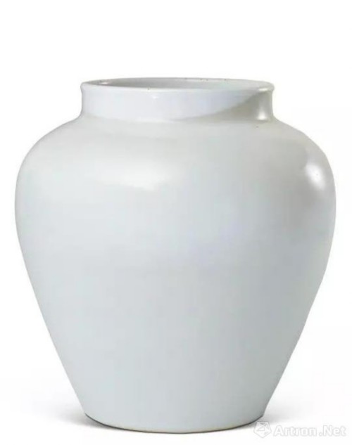 罐唇口短頸、豐肩垂腹、弧壁下斂、平底臥足,敦實渾厚。通體施白釉,釉色白潤,施釉頗厚,質(zhì)感厚重。底部無釉,足露澀胎,胎質(zhì)堅致精良。清代對前朝名品的摹制竭力鉆研,對于永宣成三窯佳器至為推崇,不獨青花一項,白釉燒造亦是成就斐然。本品便屬清代早期較為難得的此中佳例,為摹制永樂甜白瓷之典型器。