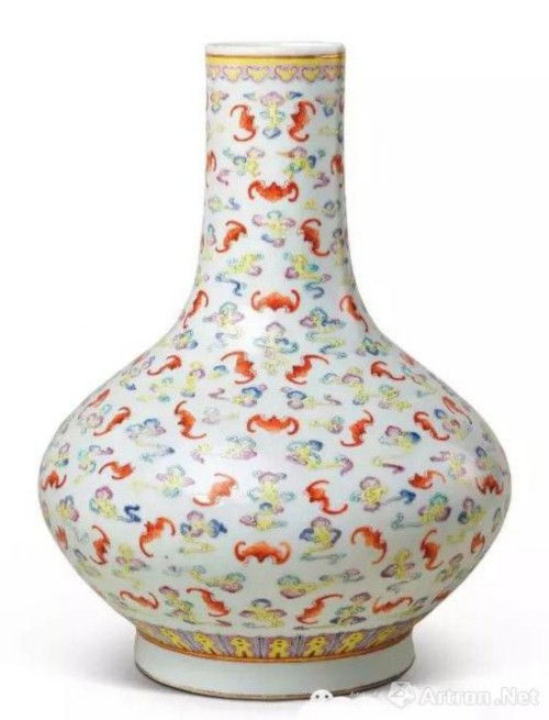 清光緒 粉彩云蝠紋荸薺瓶 H 33 cm
