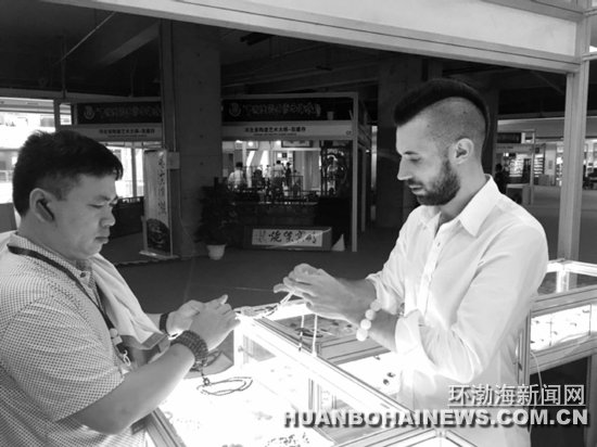 在博覽中心二樓一個(gè)展位前,會說流利中國話的波蘭姑娘高夏和波蘭小伙子卡米爾正在向觀眾展示來自波羅的海的天然琥珀。卡米爾介紹說,因?yàn)橹袊讼矚g波蘭琥珀,他兩年前就來到中國,想在中國開展事業(yè),為此特意在北京理工大學(xué)學(xué)習(xí)了中文。“過幾天,我在唐山路南區(qū)開設(shè)的工作室就要開業(yè)了。”卡米爾說,之所以選擇在唐山開設(shè)工作室,是因?yàn)樗幌矚g太大的城市,并且由于今年6月份中國—中東歐國家進(jìn)出口商品展在唐山舉辦這個(gè)機(jī)緣,他曾來唐山考察,那次經(jīng)歷讓他喜歡上了唐山這座城市和熱情的唐山朋友。“在開設(shè)工作室的過程中,唐山的朋友幫我做了非常多的事情,太周到了!太讓我感動(dòng)了!”卡米爾聳了聳肩膀,攤開雙手,用經(jīng)典的歐美方式表達(dá)了自己的感動(dòng)。